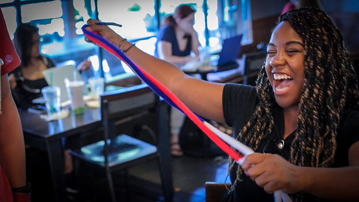 Three different colored pieces of rope are shown and openly tied together. Amazingly, the knots melt away, transforming the pieces into one long three-colored Rainbow Rope! You finish clean and everything can be thoroughly examined!