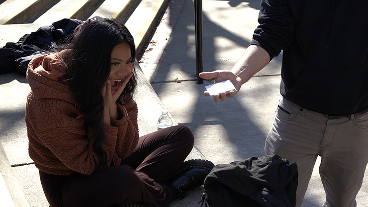 Prove that Siri is an amazing mentalist. Have a participant freely cut the deck as many times as they like. While they are mixing the pack, the performer asks Siri to name a random card and a random number. Without ever touching the cards, and from a position they freely cut to, they count down to the number and the card is there!